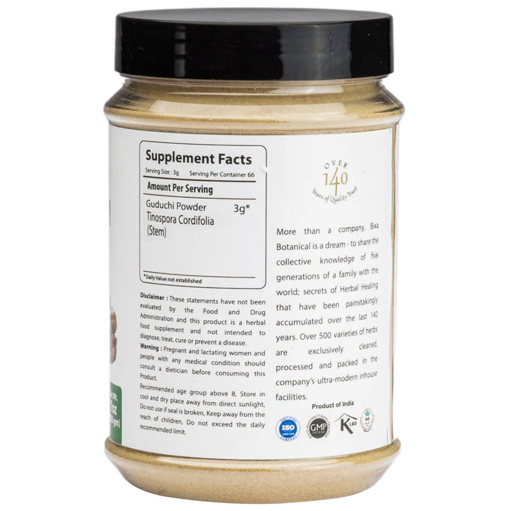 In Ayurveda, Tinospora or Guduchi is considered to be very valuable Herb & used in various generic formulations. As per Ayurvedic Text, Tinospora is pungent, bitter in taste, sweet after digestion & hot in potency. Guduchi supports mitigation of all three Doshas (Vatta, pitta, kapha), helps in digestion, removes Toxic waste (Aam) and rekindles the digestive fire. Giloy helps in various ailments like skin diseases, Jaundice, piles, high blood glucose level, Fever of Unknown origin & used as Immunity modulator and as Rejuvenation therapy.