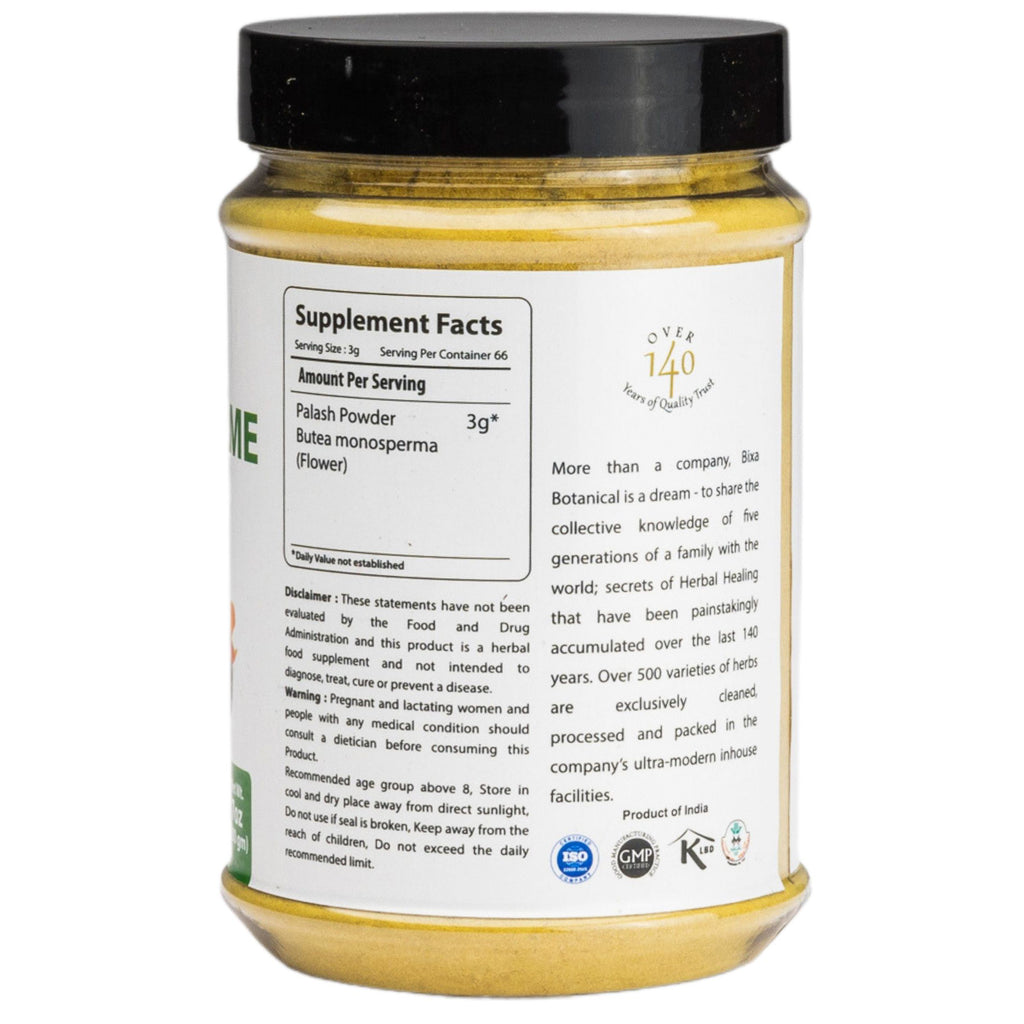 Palash powder when taken regularly helps to reduce heat in the body, improve urinary bladder functions and detoxify blood. Palash supports blood & skin purification when taken with Cumin water. Palash helps to pacify stomach, pelvis burning sensation & extra thirst. A decoction of Palash powder with coriander supports removal of uric acids from Urine and storage in the joints.