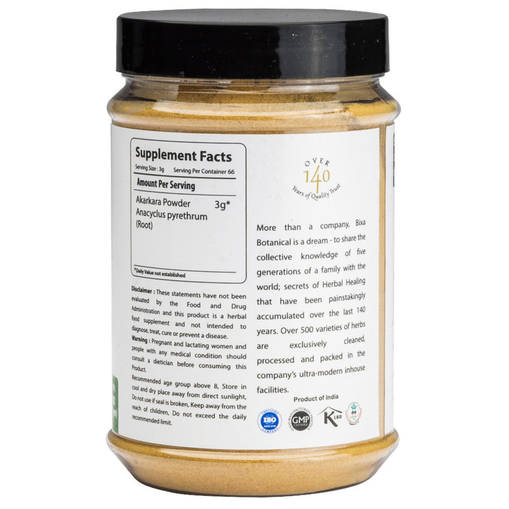 Nowadays Akarkara is used to help to improve salivation and digestion. Scientific study has shown presence of essential volatile oil & an alkaloid “pellitorin or pyrethrin”. Pellitory may help to relax stressed out muscles and get relief from convulsions (when taken with honey). A water extract/ decoction of Pellitory root is useful as a gargle in carious teeth, toothache, sore-throat and inflamed tonsils. Akarkara is given regularly to support nervous system during paralytic attack and pacify pain in joint inflammation. Akarkara possess antioxidants which support as immunity modulator and helps to fight back harmful organisms, reduce fever symptoms. Akarkara helps to improve cognitive functions & supports healthy memory boost.