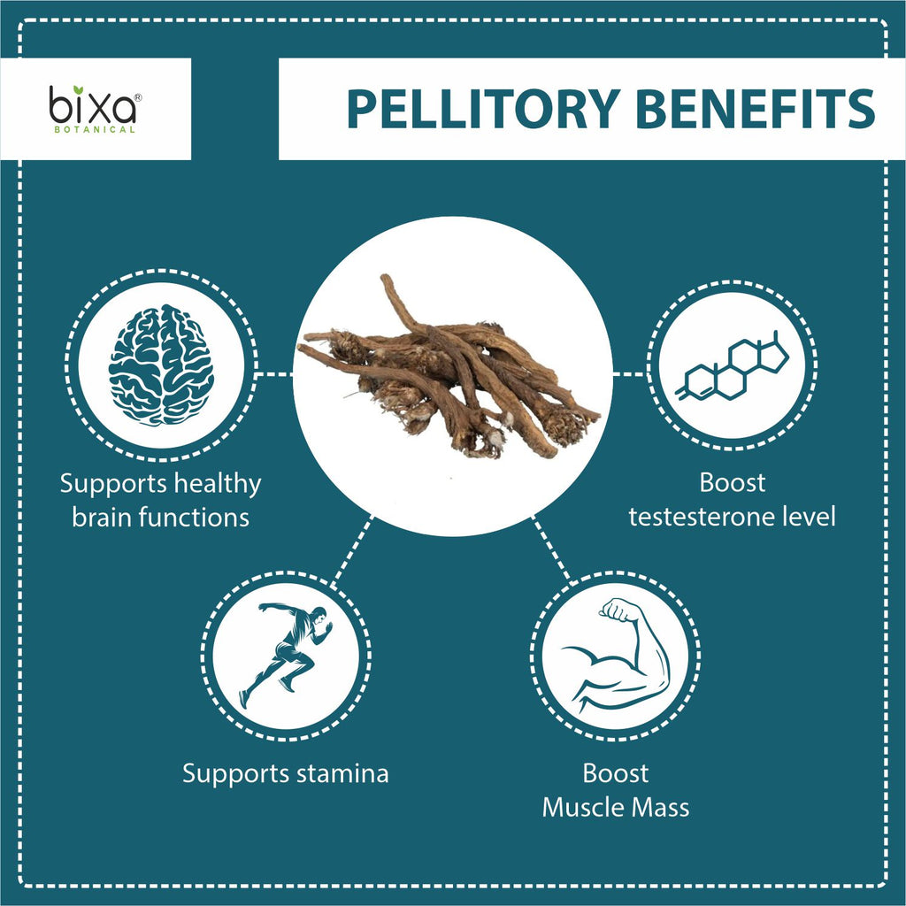 As per Ayurveda Pellitory is Pungent in taste, Hot in potency and helps to pacify Vatta, Pitta & Kapha doshas, strengthens Brain functions & helps to improve sweating.