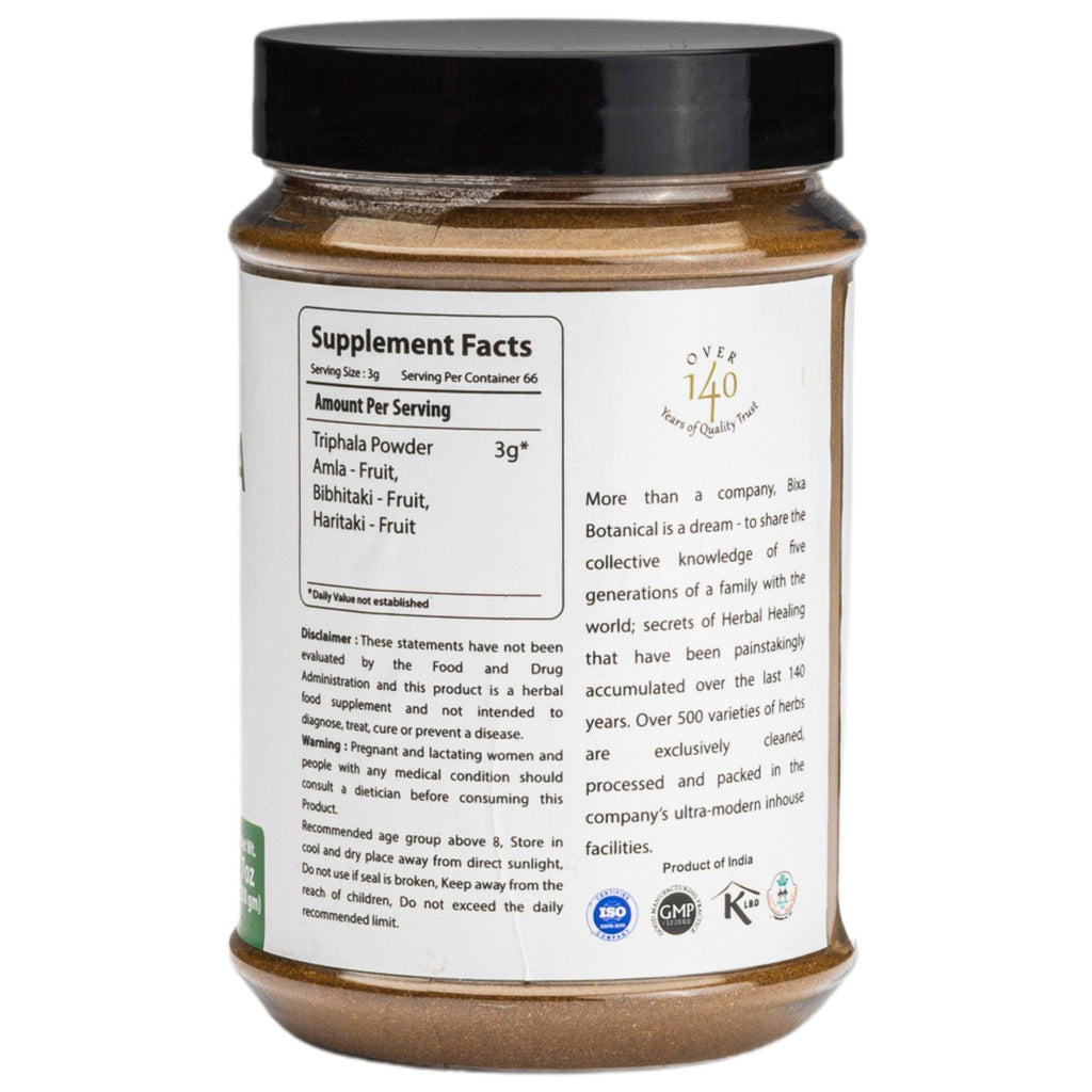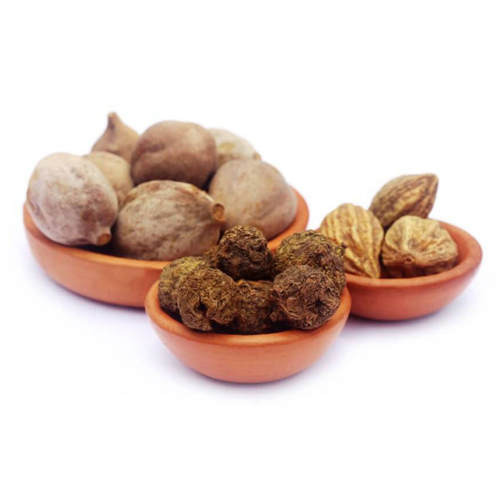 Triphala is an Ayurvedic traditional generic medicine that is popular as rasayana or the rejuvenator. Triphala is the combination of three wonderful herbs/ myrobalans - Emblica officinalis, Terminalia chebula and Terminalia belerica in equal quantity. Triphala powder is used to balance the doshas (the elements of body and mind), especially it pacifies vitiated Kapha/pitta and supports enhancement in the process of digestion and elimination of toxins. Triphala powder supports laxative and carminative action, which helps to relieve constipation, flatulence, gas, and abdominal distension.